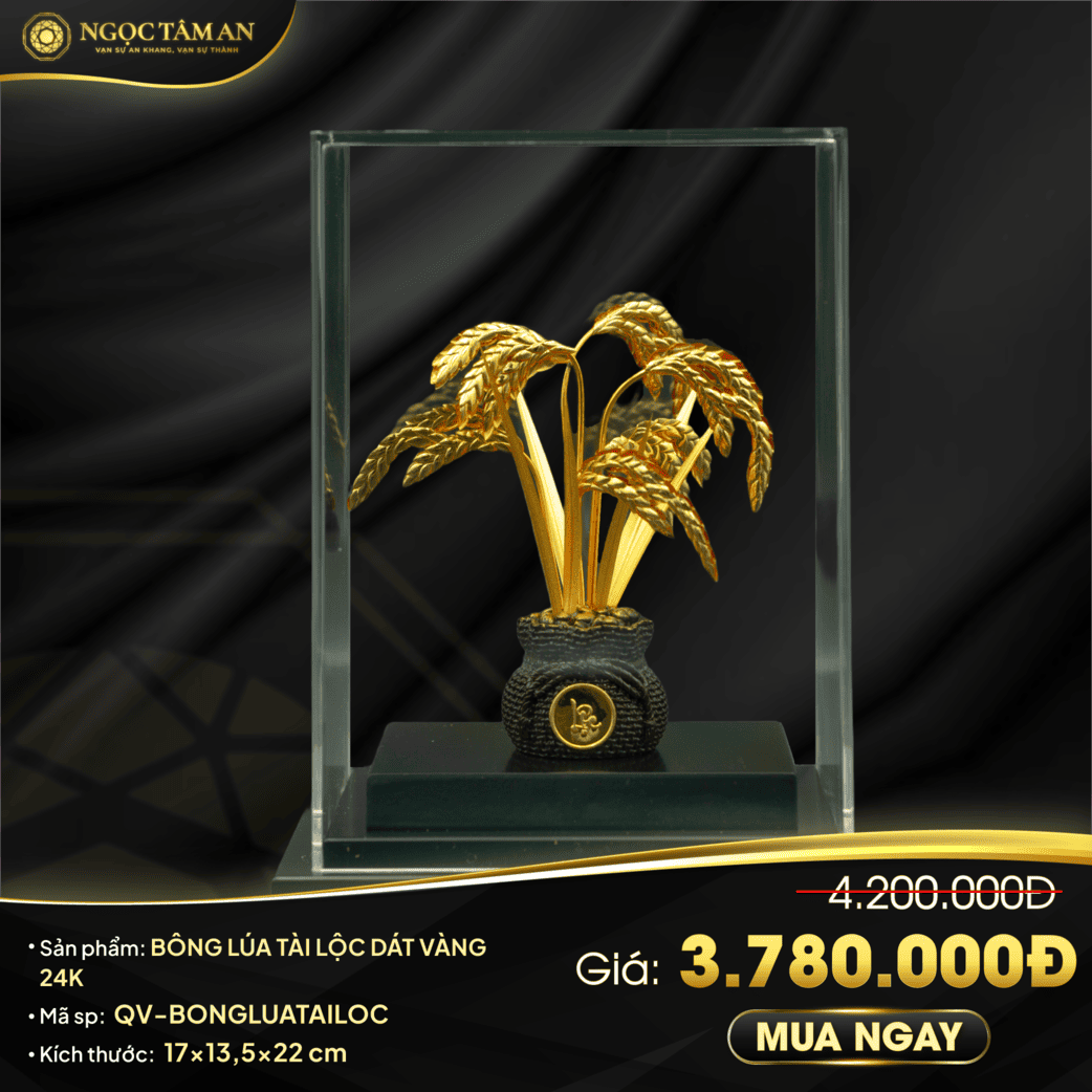 - Biểu tượng của sự giàu có và sung túc: Bông lúa từ lâu đã được xem là biểu tượng của sự no ấm, sung túc và mùa màng bội thu. Khi được dát vàng 24K, bông lúa càng trở nên quý phái và tượng trưng cho sự giàu sang, thịnh vượng.