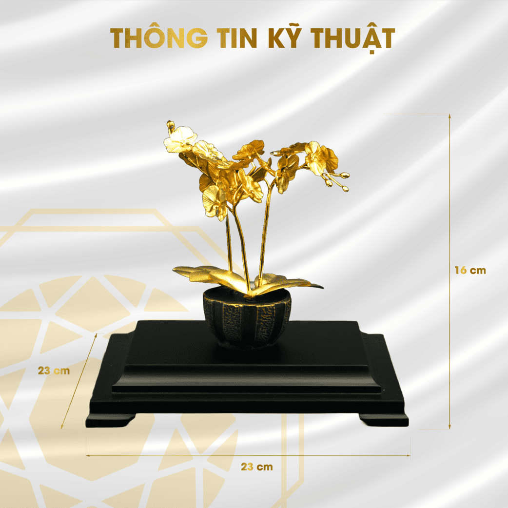 - Thiết Kế Tinh Xảo: Với ba nhánh lan kiêu sa, mỗi nhánh hoa đều được dát một lớp vàng 24K lấp lánh, mang đến sự sang trọng và đẳng cấp cho không gian của bạn.