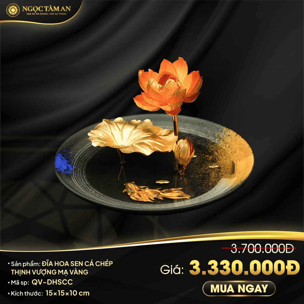 - Mạ vàng 24k sang trọng: Các chi tiết hoa sen và cá chép được mạ vàng 24k, tạo nên vẻ đẹp sang trọng, đẳng cấp.