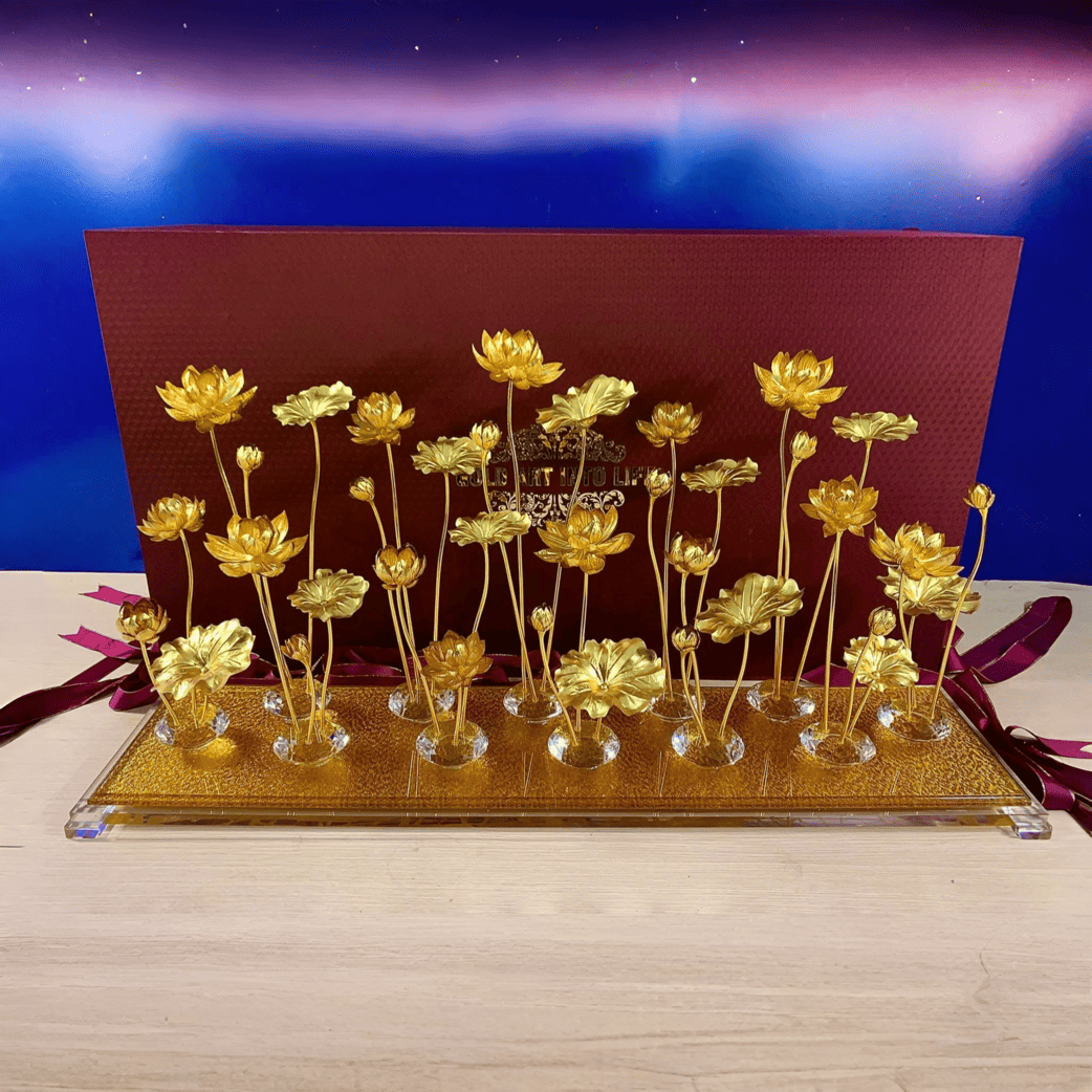 Hồ hoa sen dát vàng 24K cỡ đại (12 củ, 36 nhánh hoa)