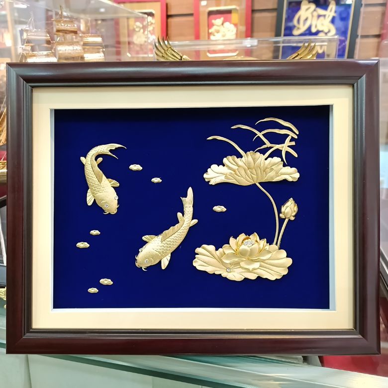 Tranh được dát vàng 24K sang trọng, mang biểu tượng của phú quý, may mắn và sự thanh cao trong tâm hồn. Sản phẩm phù hợp làm quà biếu đối tác, người thân.