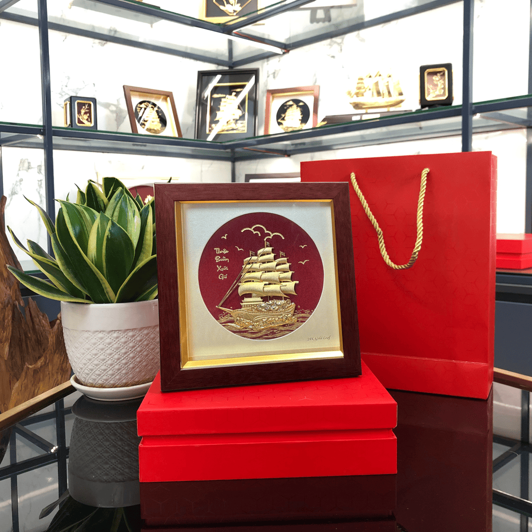 Sở hữu ngay tranh Thuận Buồm Xuôi Gió dát vàng 24K trên nền đỏ rực rỡ để đón nhận may mắn và thành công!