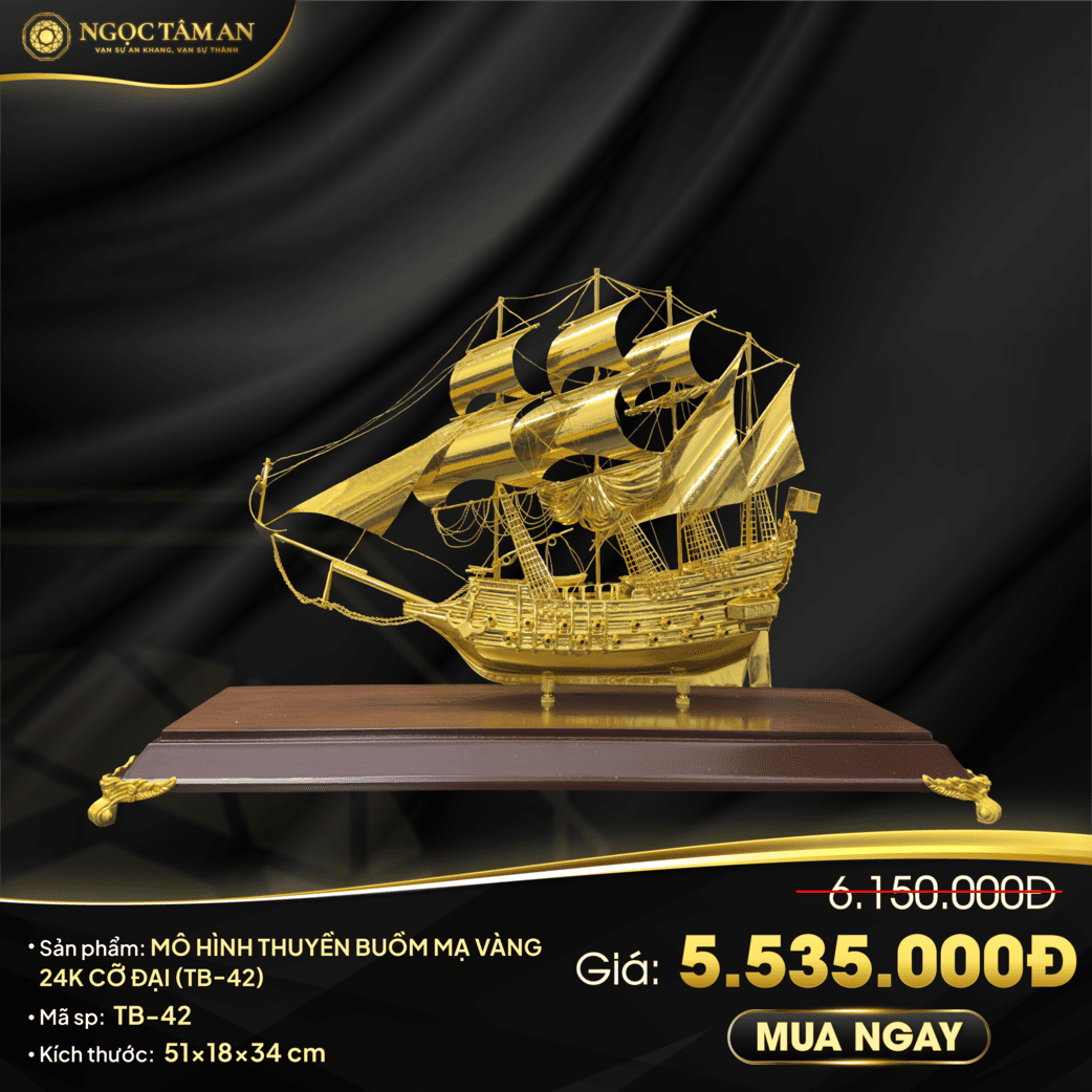 Khi một doanh nghiệp đã xây dựng được nền tảng vững chắc, bước tiếp theo chính là hành trình giong buồm ra biển lớn, mở rộng và chinh phục những thị trường mới. Siêu phẩm Thuyền Buồm Mạ Vàng “Giong Buồm Bốn Phương” (TB-42), với kích thước cỡ đại và 4 cột buồm căng đầy sức sống, được chế tác để cổ vũ cho khát vọng đó. Đây là biểu tượng cho một giai đoạn phát triển mới, sẵn sàng vươn xa và gặt hái thành công ở khắp bốn phương.