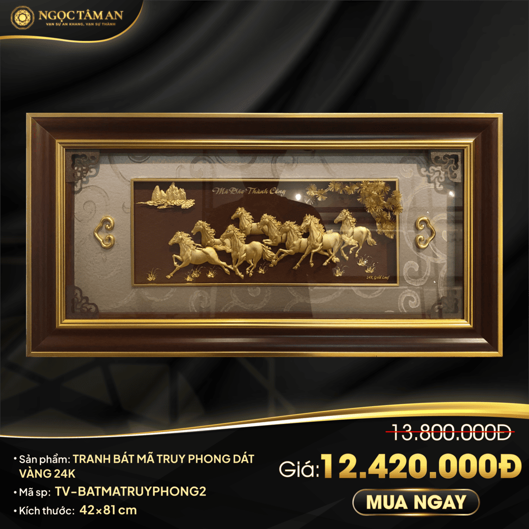 Chính vì thế, Tranh Bát Mã Truy Phong mạ vàng 24K trở thành lựa chọn lý tưởng để gửi gắm những lời cầu chúc trọn vẹn.