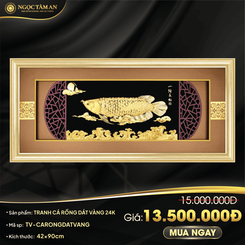 Bạn đang tìm kiếm một bức tranh mạ vàng độc đáo, thể hiện gu thẩm mỹ tinh tế và mang trong mình những giá trị phong thủy sâu sắc? Bức tranh Cá Rồng dát vàng 24K chính là sự lựa chọn hoàn hảo. Hãy cùng Ngọc Tâm An đi tìm hiểu chi tiết về bức tranh mạ vàng này!