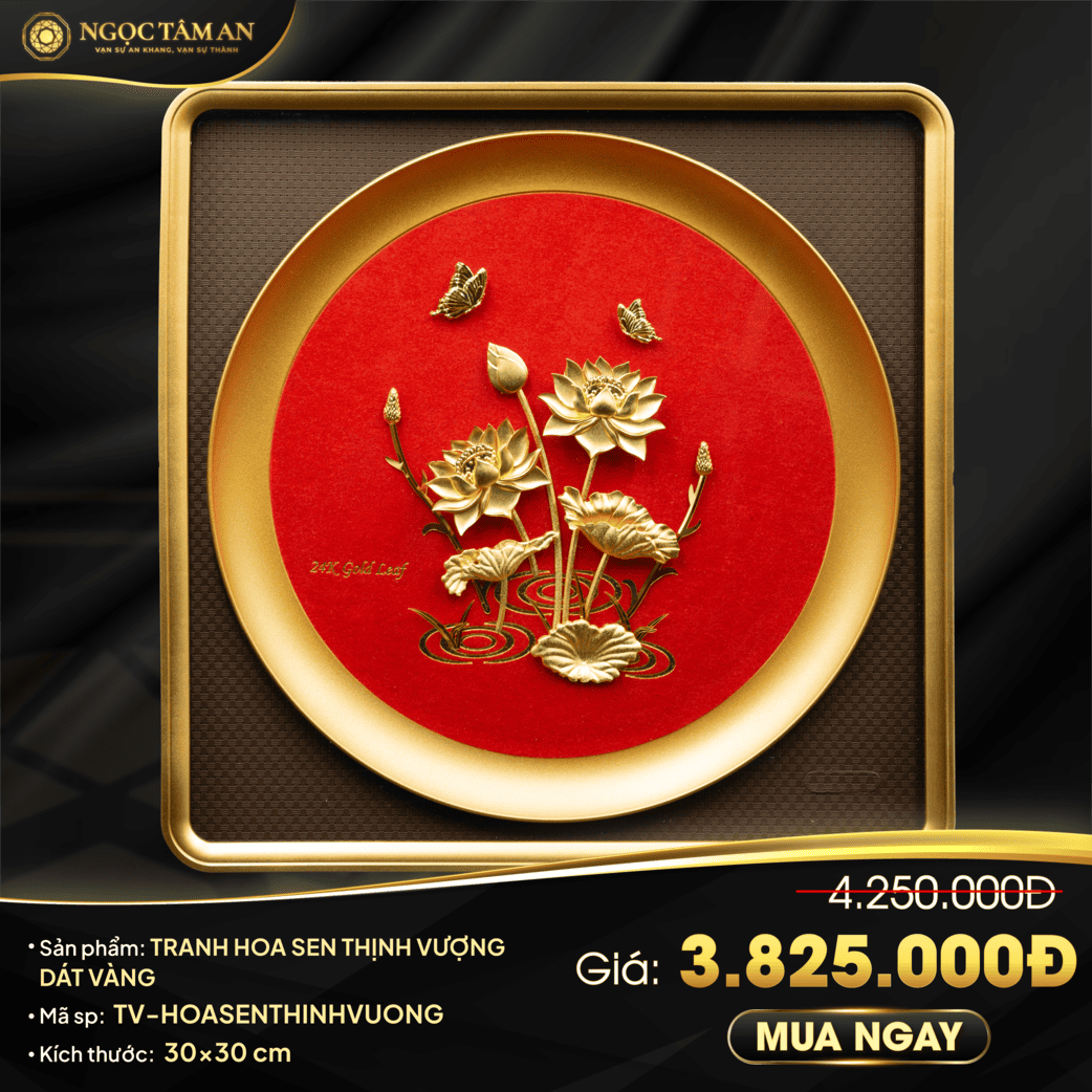 Bạn đang tìm kiếm một món quà ý nghĩa để tặng người thân, đối tác hoặc đơn giản là muốn trang trí không gian sống thêm phần sang trọng? Tranh hoa sen thịnh vượng mạ vàng 24K của Ngọc Tâm An chính là câu trả lời hoàn hảo.