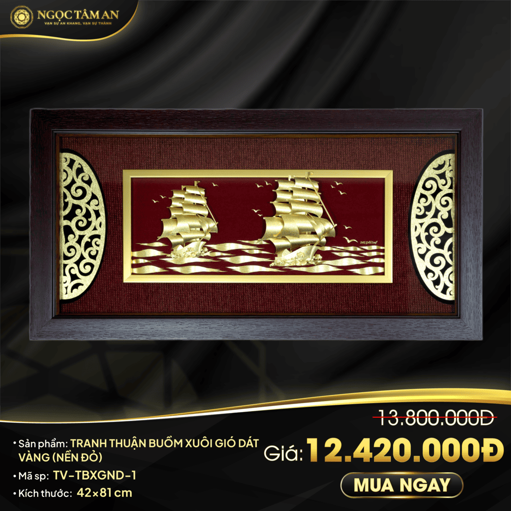 Tranh Thuận Buồm Xuôi Gió mạ vàng 24k là sự kết hợp hoàn hảo giữa nghệ thuật chế tác tinh xảo và ý nghĩa phong thủy sâu sắc. Bức tranh không chỉ là vật phẩm trang trí sang trọng mà còn mang đến may mắn, tài lộc cho gia chủ.