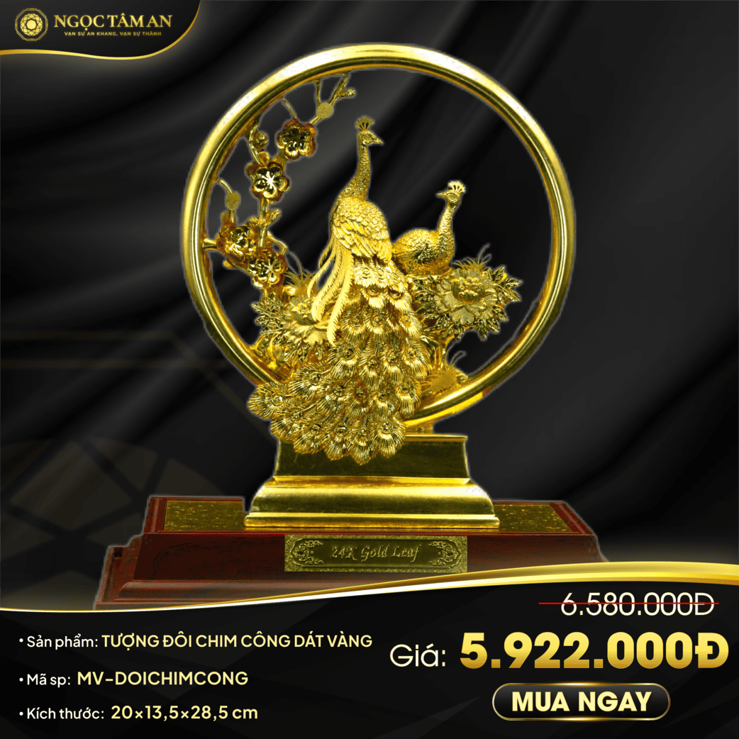 Bạn đang tìm một sản phẩm ý nghĩa và đảm bảo thẩm mỹ để trang trí cho ngôi nhà của bạn, hay tìm một món quà dành tặng cho bạn bè và người thân. Hãy đến với bộ sưu tập tượng trang trí cao cấp của chúng tôi! Chúng tôi xin trân trọng giới thiệu sản phẩm Tượng Đôi Chim Công Dát Vàng – không chỉ là một đồ vật trang trí mà còn mang ý nghĩa sâu sắc. Cùng Ngọc Tâm An tìm hiểu về sản phẩm này qua bài viết dưới đây.