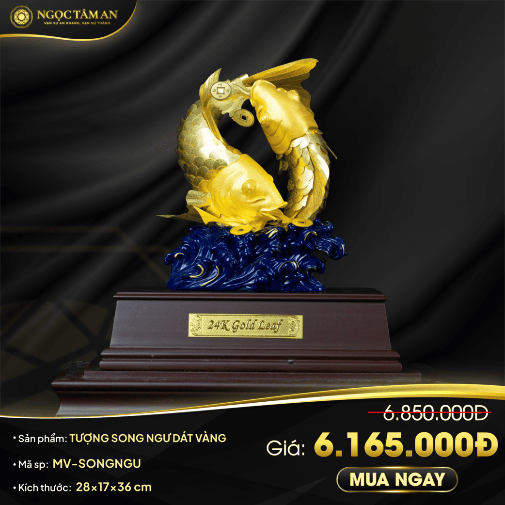 TƯỢNG SONG NGƯ DÁT VÀNG 24K