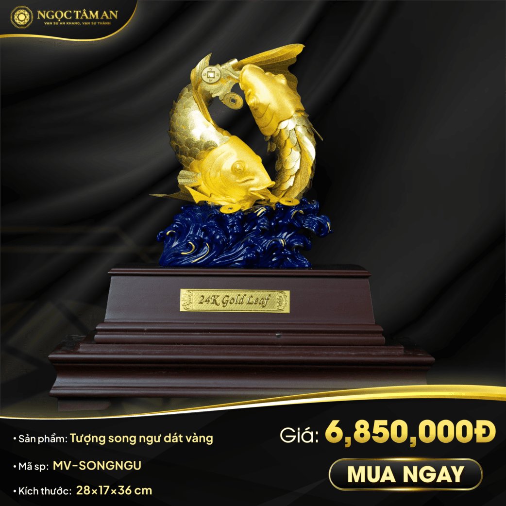 TƯỢNG SONG NGƯ DÁT VÀNG 24K
